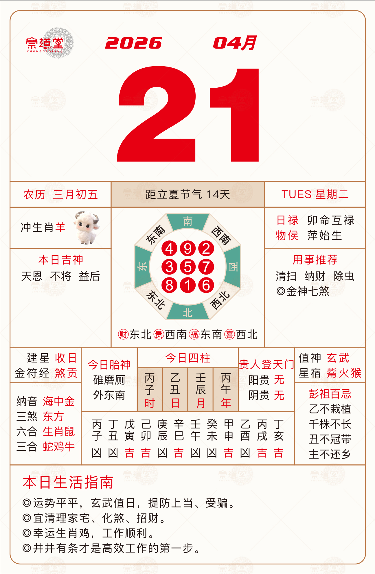 2026年4月25日 农历三月初九 己巳日 冲猪