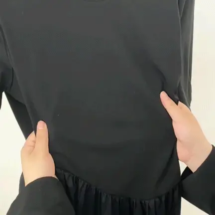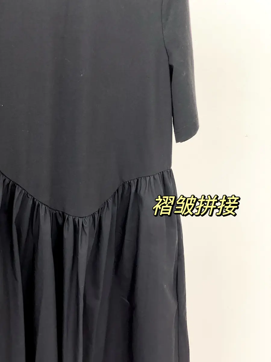 上下采用了不同材质的拼接,全身会更有层次和设计感,裙摆采用纯棉材质,更加有型;