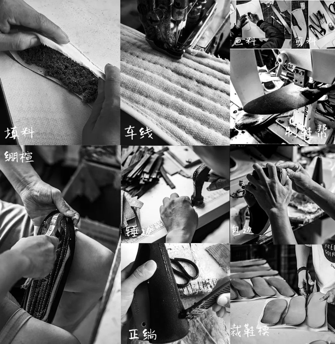 楦鞋、子修抹边、制袼褙、圈底、槌底、缝合....等等