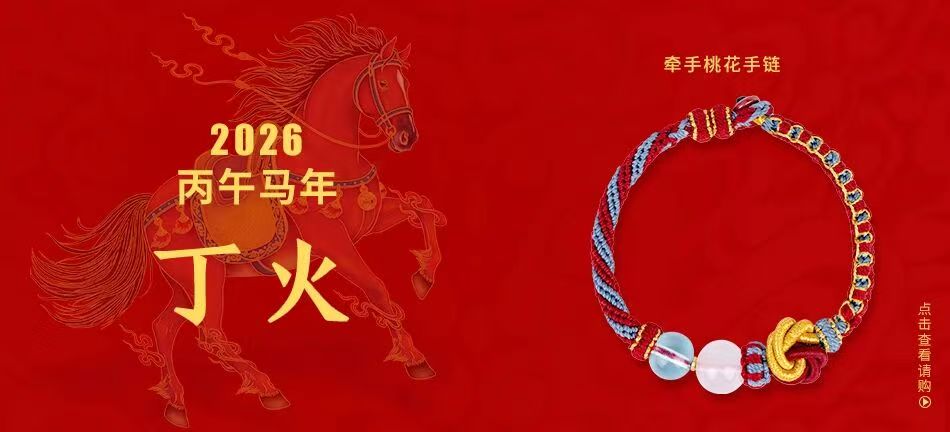 ④热恋中人建议佩戴牵手桃花手串,共同做姻缘和合民俗仪式。