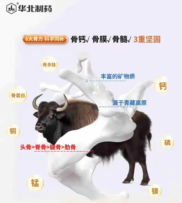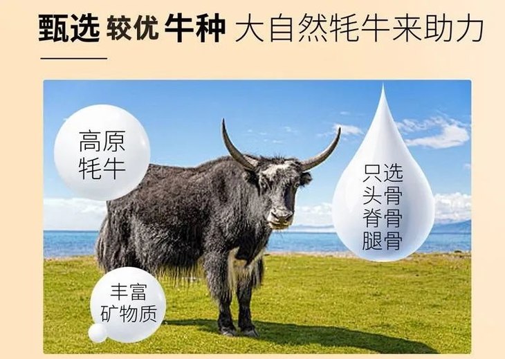 牦牛骨+牦牛骨髓中富含动物骨钙,接近人体结构,更容易被吸收。