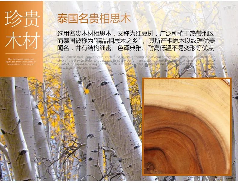 泰国因为光照和雨水充足,是相思木的黄金产区。那里出产的相思木结构细密,强度及抗冲击韧性好,耐候性极强,在温度较大的气候条件下都不易变形。