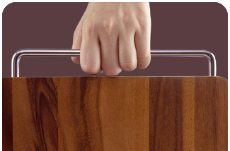 除了材质与工艺上的精益求精,细节处的小设计也让砧板更加独特。不锈钢提手,让握感更加舒适。金属与木质的材质碰撞,居然也能擦出不一样的火花。