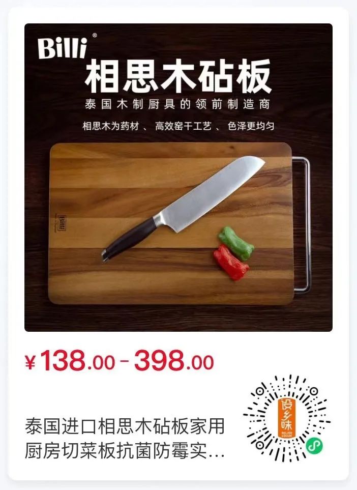 为了满足上面的条件,我们经过不断寻找与筛选,终于找到了这一块砧板——Billi泰国进口相思木砧板。