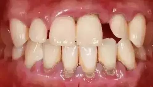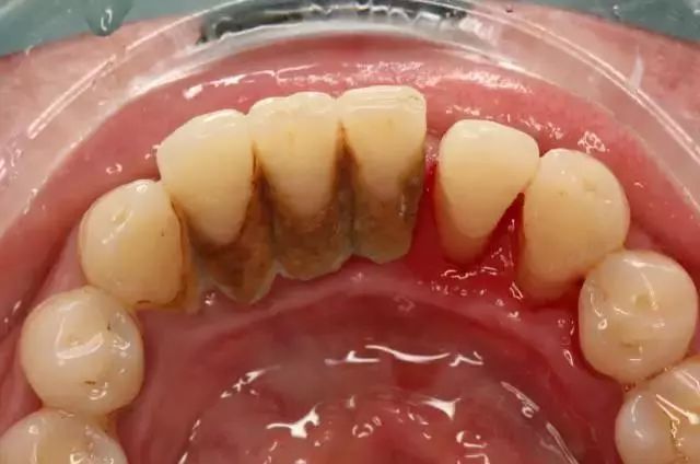 牙龈周边积聚着大量黑褐色牙结石并伴有口腔异味,牙龈红肿明显,时间一长,很有可能造成牙齿松动脱落。