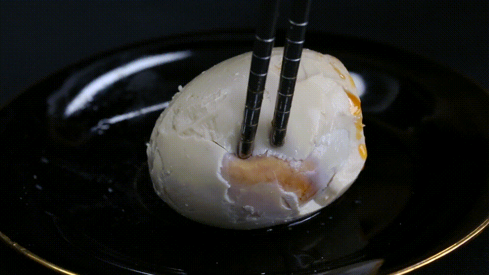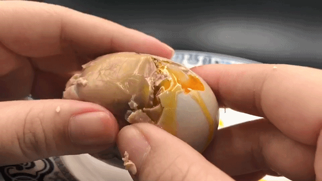 经历重重筛选、重重清洗以及先腌后烤的匠心工艺,才得到这枚一戳喷油的烤海鸭蛋。