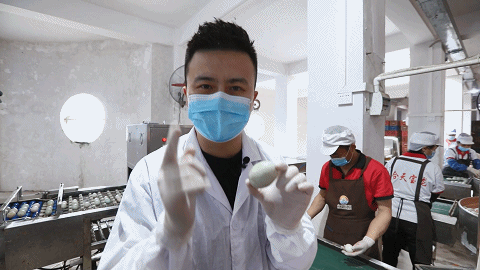 腌制好的鸭蛋还需要再次清洗、烘干、光检等步骤,才能包装,期间还需要进行123℃的高温烤制,时长在1小时40分钟左右。