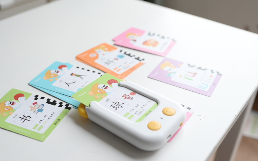 洪恩双语早教机,包含一台超萌的早教机,以及700P不同主题的认知卡片。