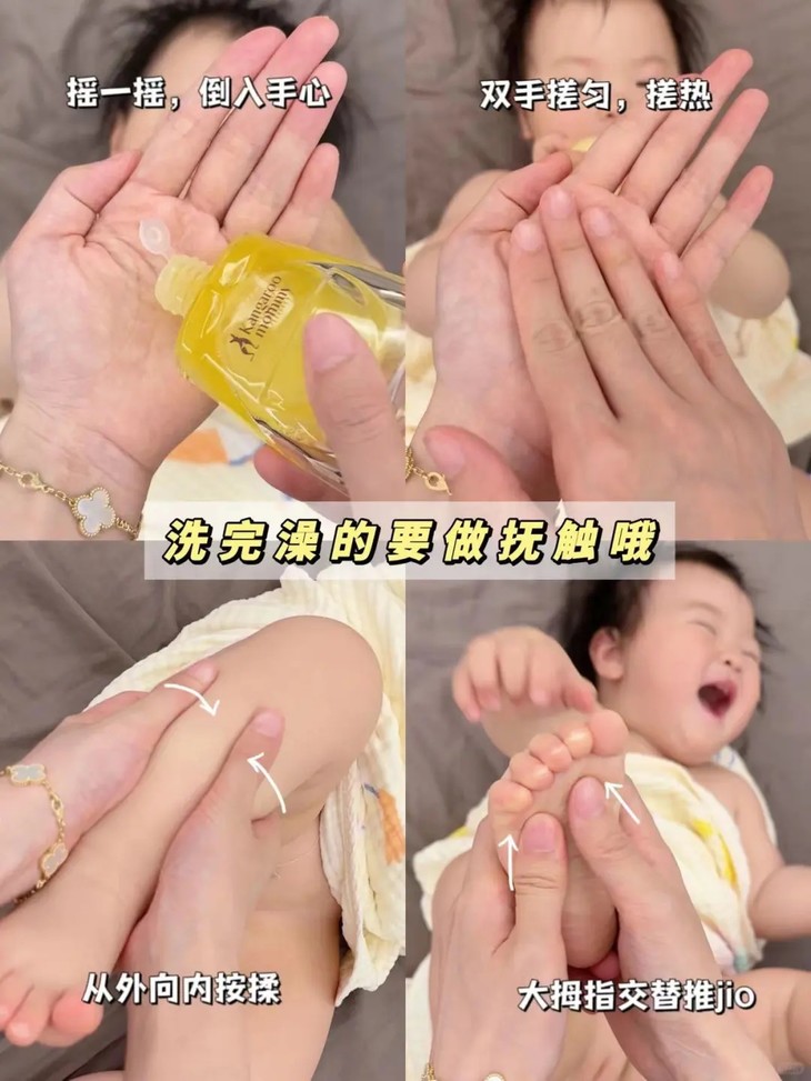 新手爸妈们从小给宝宝做抚触好处多多~不仅能用来做抚触,用久了宝宝的肌肤也会变得滑滑嫩嫩的~
