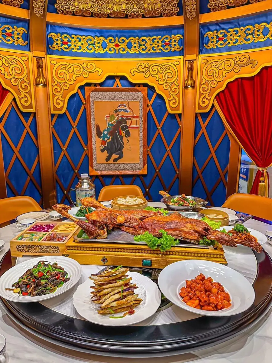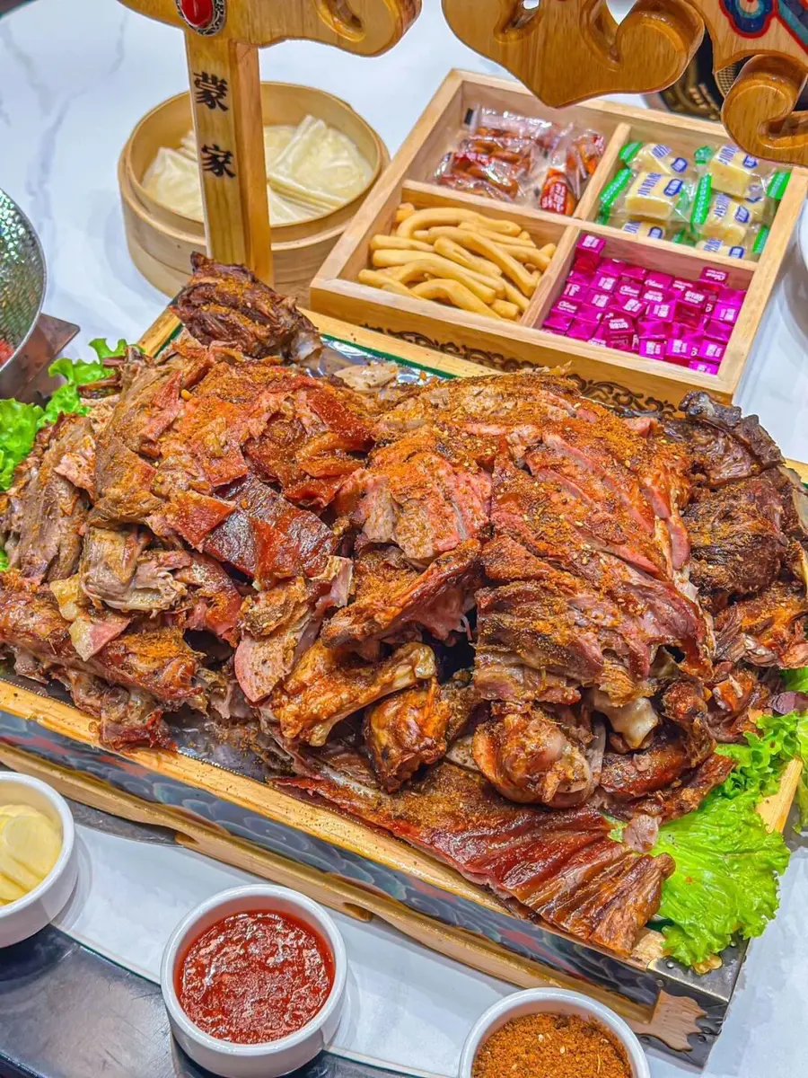 必点菜:手把肉(鲜煮羊肉,蘸野生韭菜花吃)、布里亚特包子(皮薄馅多,汤汁饱满)、奶制品拼盘(奶皮、奶干、奶酪)。
