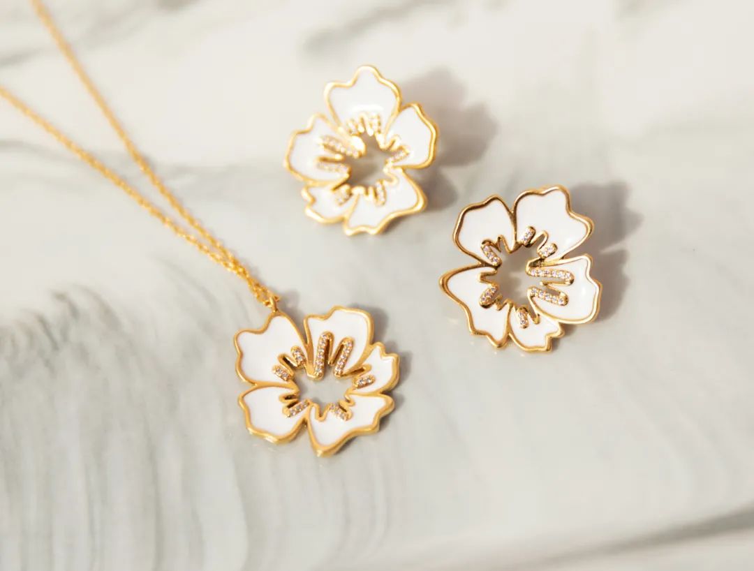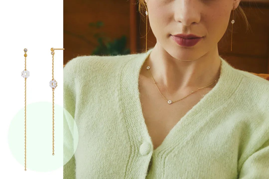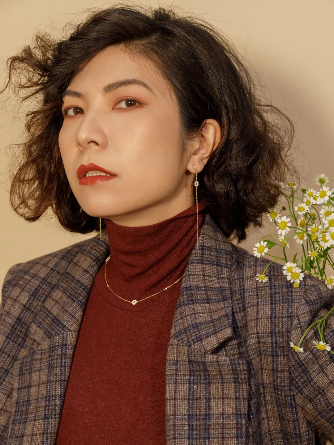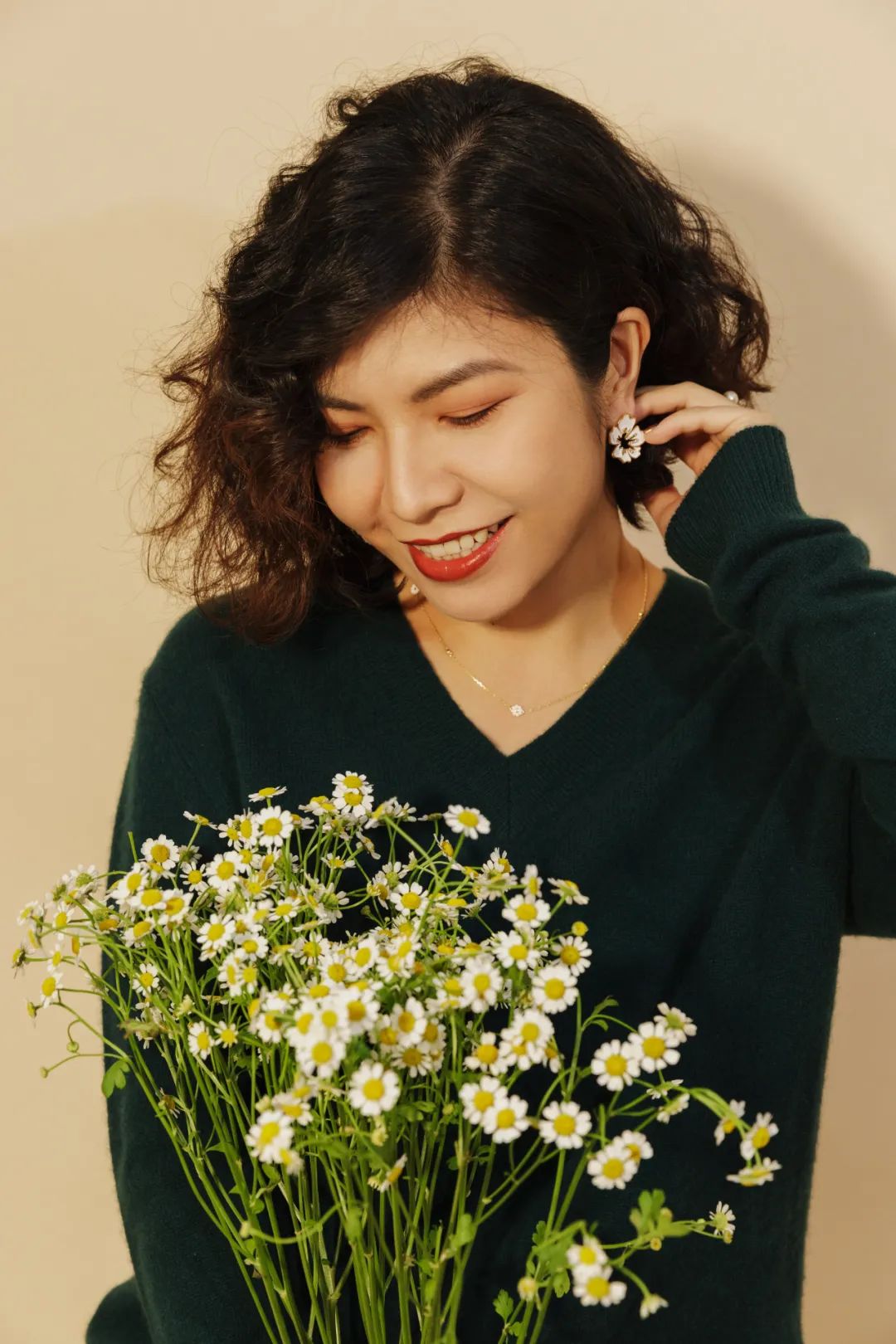 白花是全手工滴釉做出的“陶瓷感”,给那么小的花上釉、边缘还要平平整整,难度不小的。比起仿真的小雏菊设计,它就没那么卡通,不挑衣服,不挑年龄,不挑脸,非常百搭。