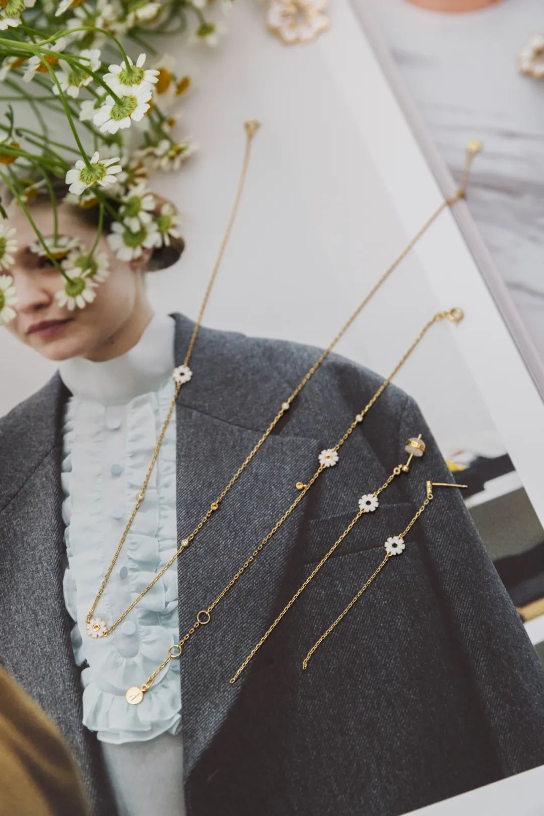 我有好几个雏菊首饰,设计师几个月前拿出小雏菊,我还说怎么又是这个?谁曾想戴上就预测这套会很受欢迎,因为连我审美那么诡异夸张的人都挺想要。纯情最可怕,真是阅尽人间繁华,临了只想坐坐旋转木马。