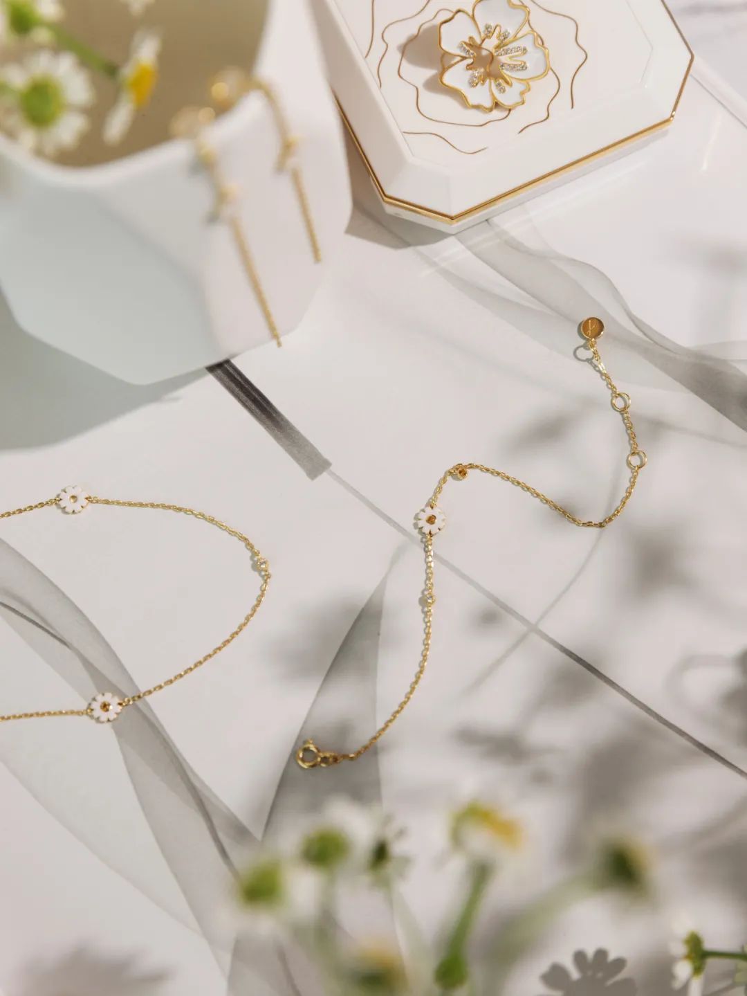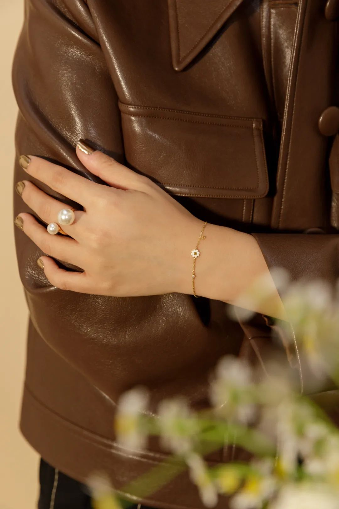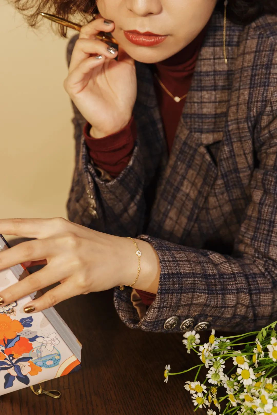 它和到处可见的写实派小雏菊不一样,也有算准确还原了“小雏菊”的精神、保留雏菊那份摇摇欲坠的纤细,链条粗细和细节都很耐看,就是3分纯真+7分法式。