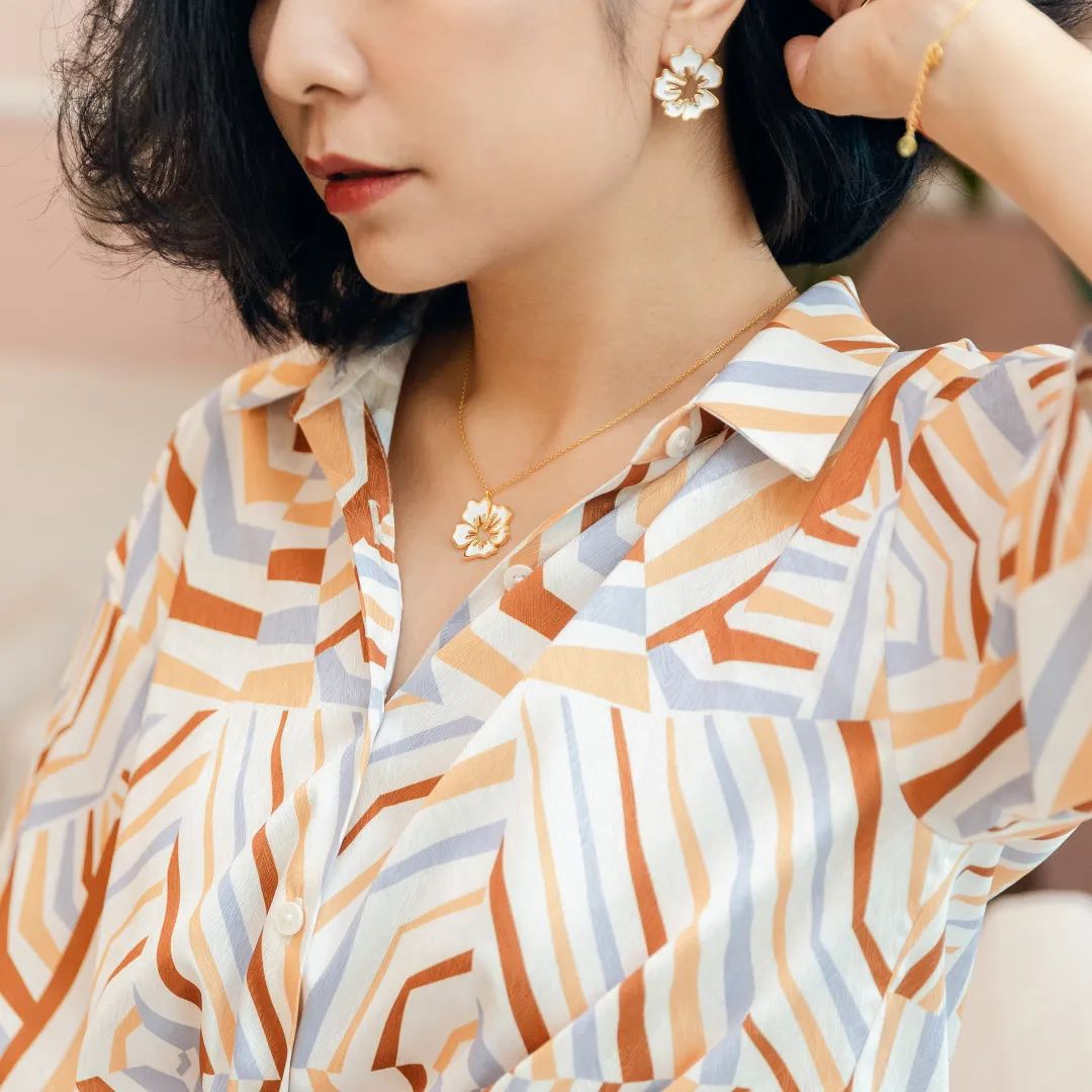 滴釉+金色,非常去油,夏天穿北野武式花衬衫考验它,也立马小清新了👇而且它特别特别轻,轻到有读者买了专门来跟我反馈说耳朵真的不痛。