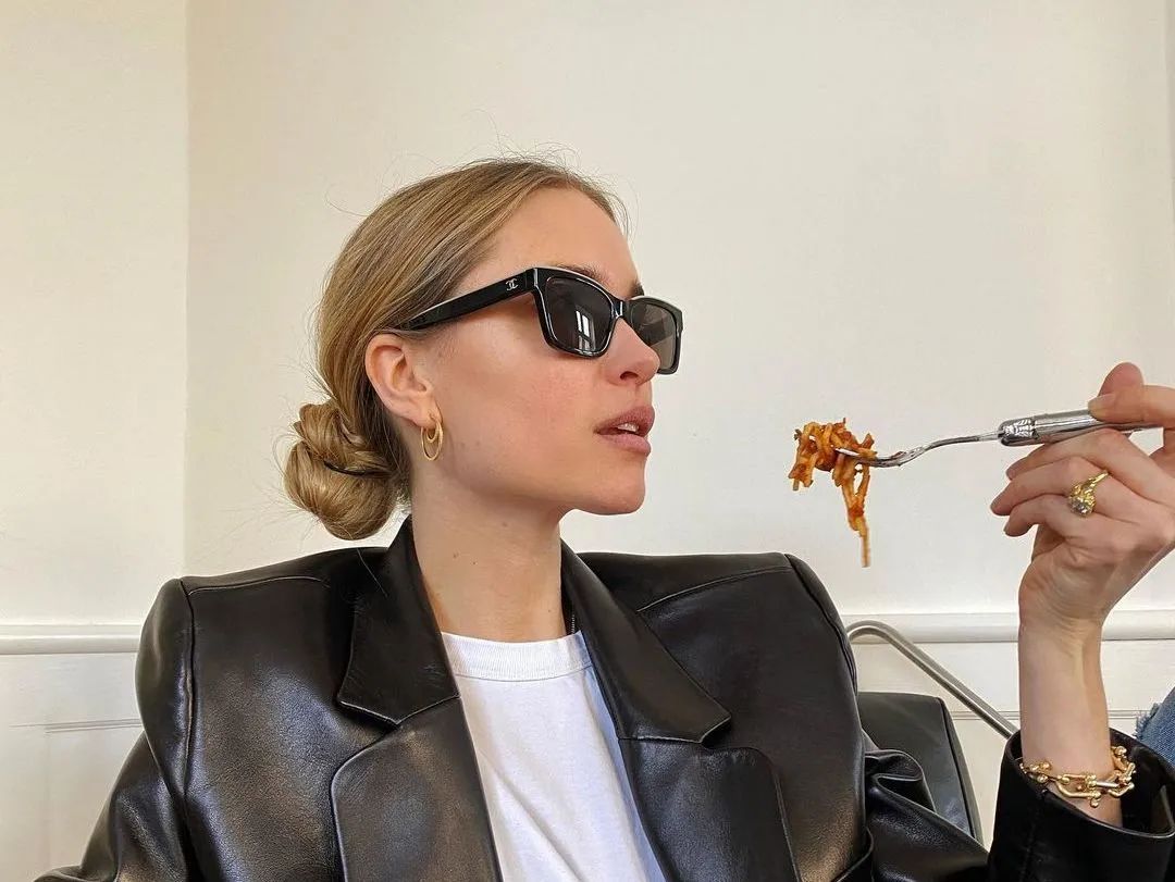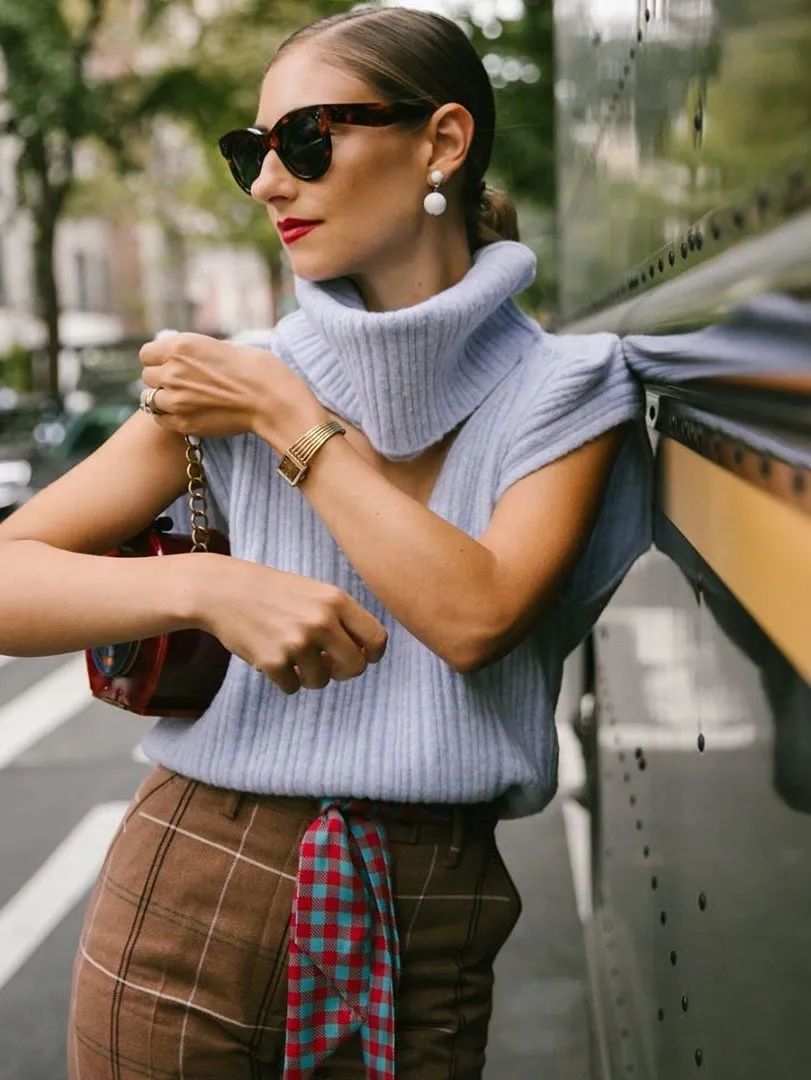 因为秋冬衣柜主调打多是黑白灰棕,大衣也是低饱和度大色块,一点点金、白、银色就会ding地一下跳出来。