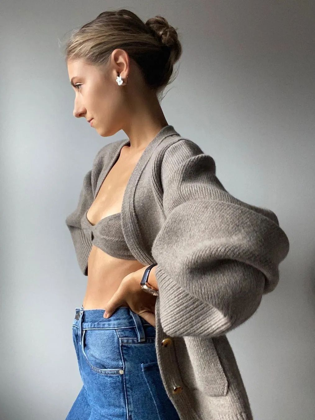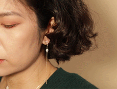 它整个很纤细,所以开始我觉得要露肤才行,要不容易被挡住。秋冬穿很多,可能戴不了。结果毛衣套上身,反倒成了它的背景板:细细地流动在耳边、脖颈儿,笨重的颜色也变得轻了。