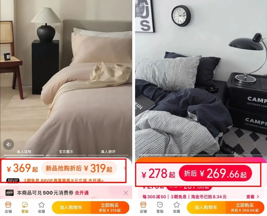 不过你们也知道的,宜J床品的品质就摆在这了,价格向来不便宜。