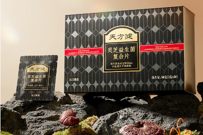 天方健灵芝益生菌复合片,每片添加50mg浓缩灵芝粉,蕴含10倍灵芝精粹,39%灵芝粗多糖,40%+菌菇多糖,12亿专利益生菌。