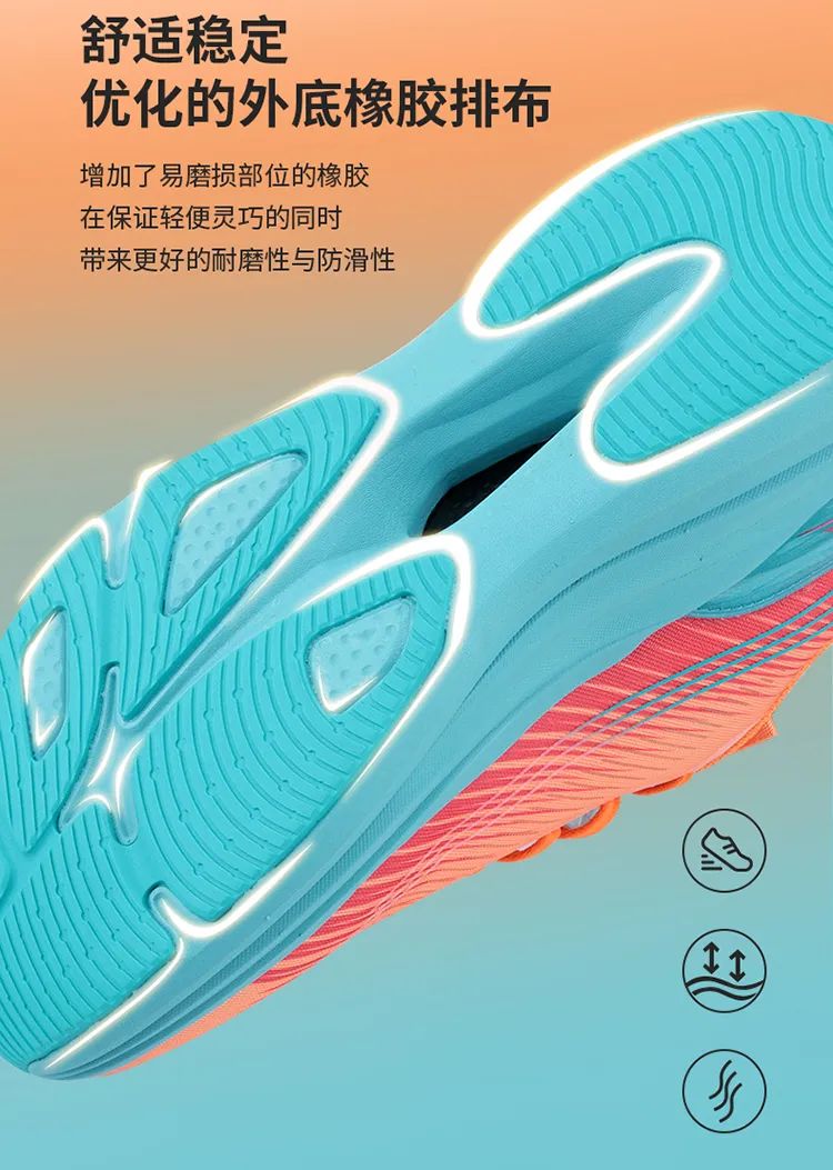 轻爽网纱鞋面,减少束缚无负担,更轻盈舒适;