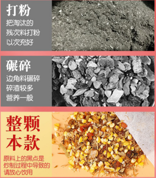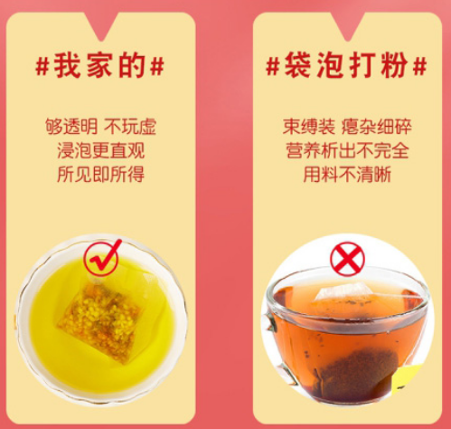 与磨成粉的茶包不同,它不是粉末状,并没有对原料进行破坏,全部都是整颗的原材料,肉眼可见的品质。