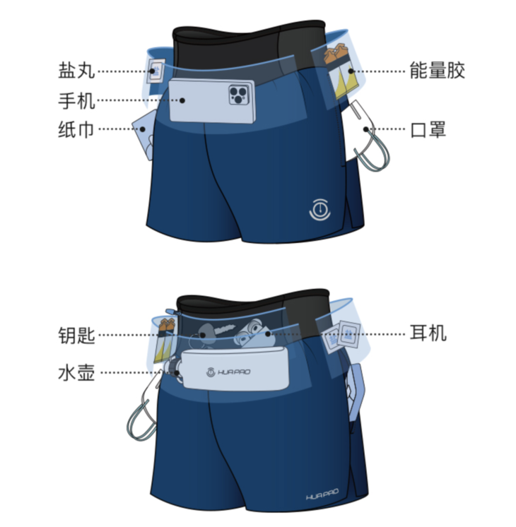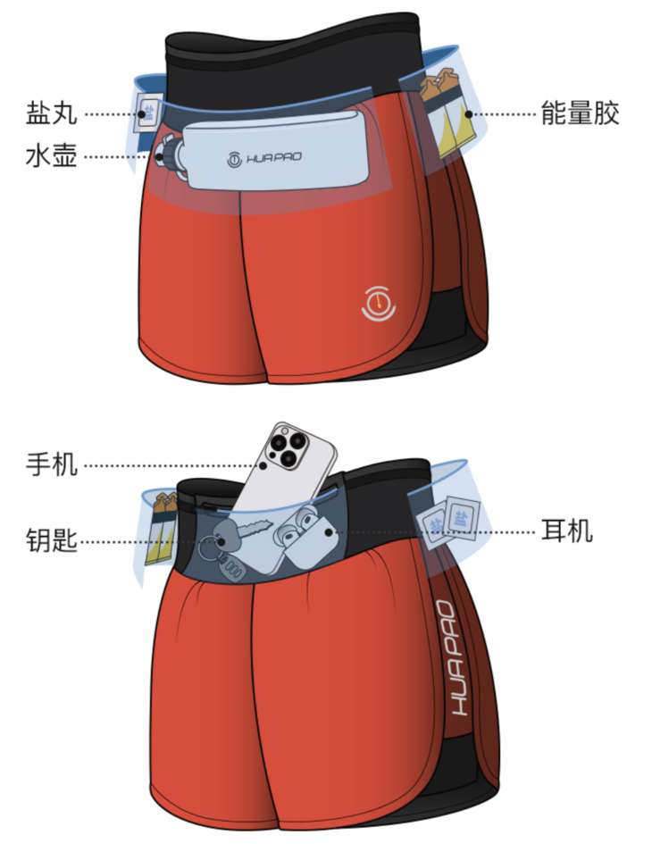 运动水壶、手机、能量胶、钥匙、纸巾!全部能装得下!比增加负累的腰包要来得更轻松!