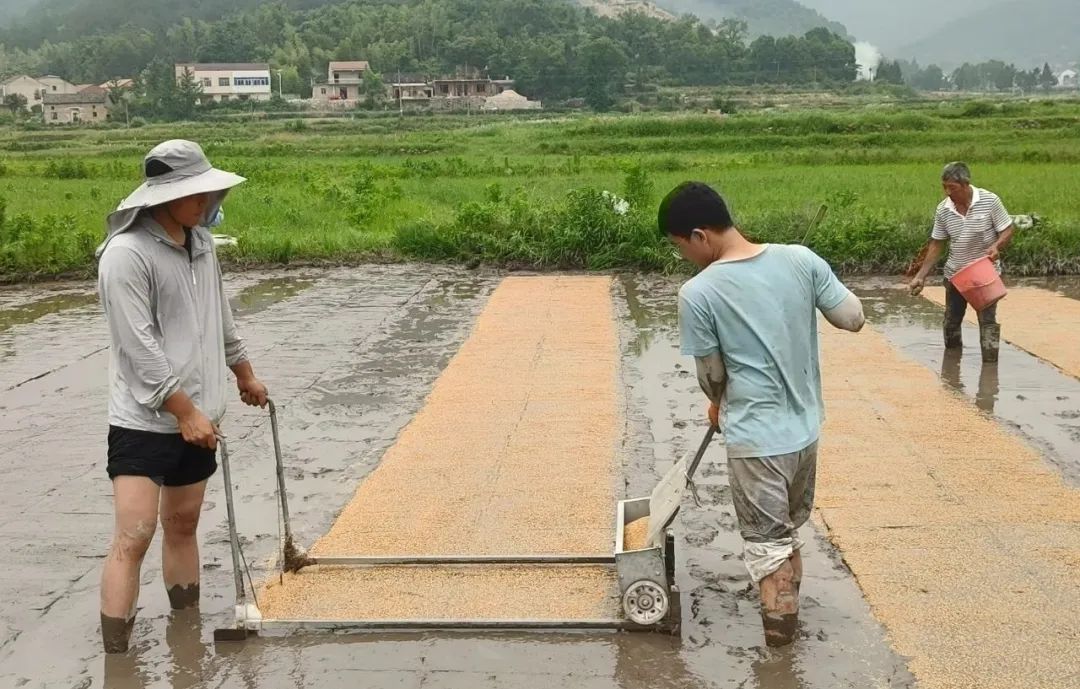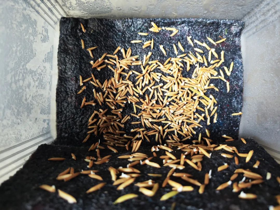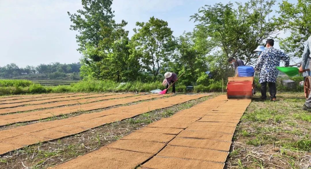 来到陌生的环境,少了伙伴们的支持,独自一个人要承担一个基地的职责,免不了要迷茫和焦虑。首先是土地问题。今年的基地换到了水库的上游,新的地块需要重新测量确认租金,少不了和村民们交流和摩擦。因为无人机测量时,田埂和水渠的面积也会被算进去,和人工测量的面积会不一致。很多村民认死理,觉得吃亏,聊来聊去就是不同意。本就不善言辞的王博很是崩溃,怀疑自己到底能不能干下去。那段时间他对基地的路况还不熟悉,稻田在几个山坳坳之间,路况错综复杂,为了测量田亩,他经常开着小三轮在田间转来转去,稍不注意就会迷路,还时不时被窜出来的狗子狂吠,只好驾着车子落荒而逃。但是抱着既然来了,就把这件事做好的想法,王博耐住性子,和当地合作伙伴周哥、王叔一块,挨家挨户与农户聊天,一个一个地谈,据理力争,最终一点点把土地磨了下来。和大庙基地不同,钟祥播种育秧是在旱地上进行的,需要大量肥力充足的育秧土。找到十万多斤肥沃而且允许采挖的底土并不容易,再加上钟祥2月下旬的降雪,各种情况之下取出来的底土比较贫瘠。因为基地是自然农法种植,不能使用化肥,在明攀师兄的提议下,王博开始做堆肥,以提升育秧土的肥力。三月上旬开始堆肥,五月份就要育秧使用,八九千斤菜籽饼和粉碎的谷壳,时间很短,那段时间王博总担心堆肥失败,把小苗烧坏了,耽误一整年的种植,便不断测试堆肥和底土的比例,以期找到合适的土壤比例。育苗实验