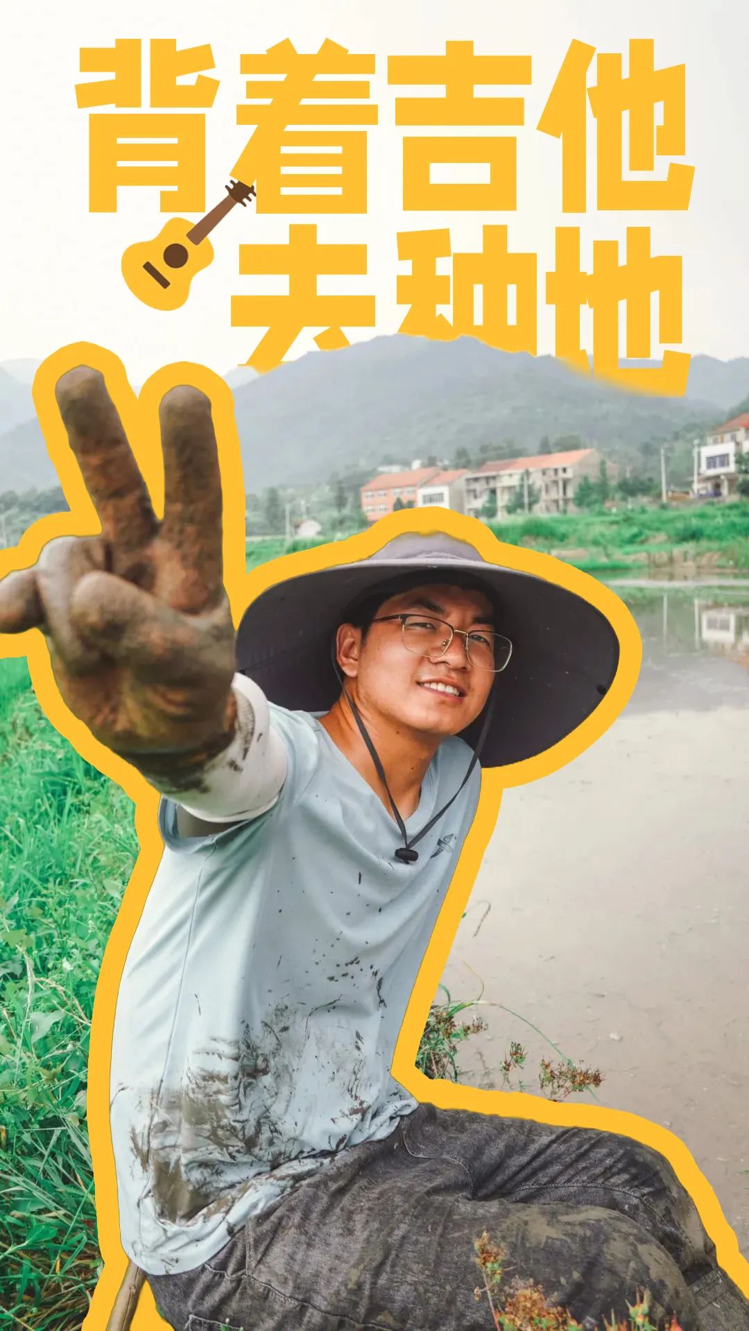有一次刷手机,无意间看到了B站上谦益的视频,新农人们的故事和田野的美好引起了他的兴趣。想着以后还可以在乡村田野自由自在地弹吉他,他没什么犹豫,跨越千里来到了湖北黄梅。