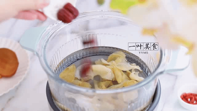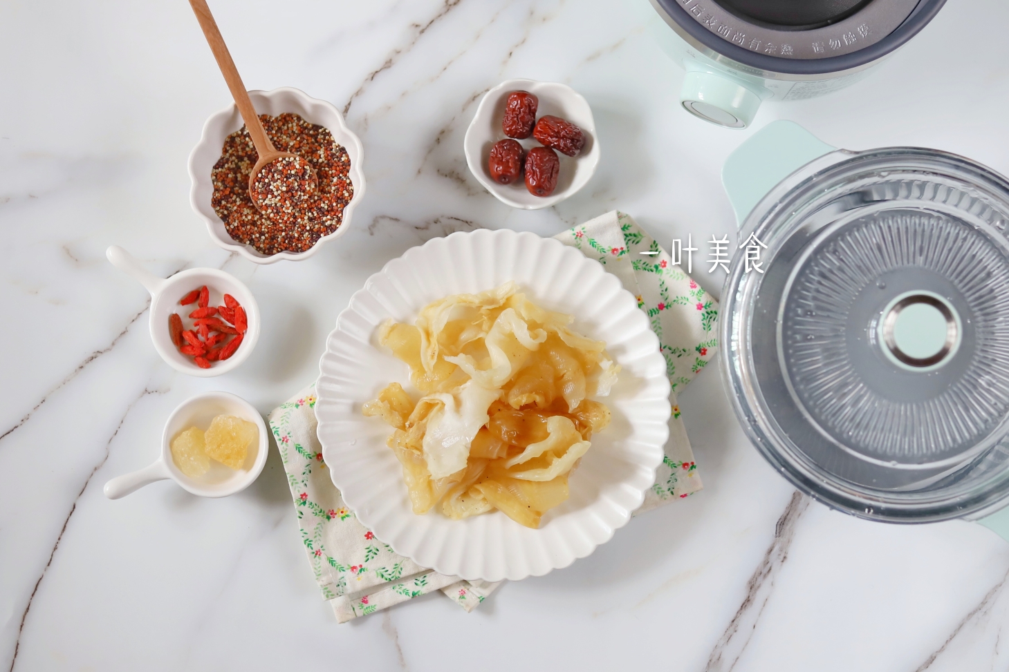 2. 藜麦半碗,水800毫升,干花胶15克,冰糖适量,红枣四五颗,枸杞10几粒