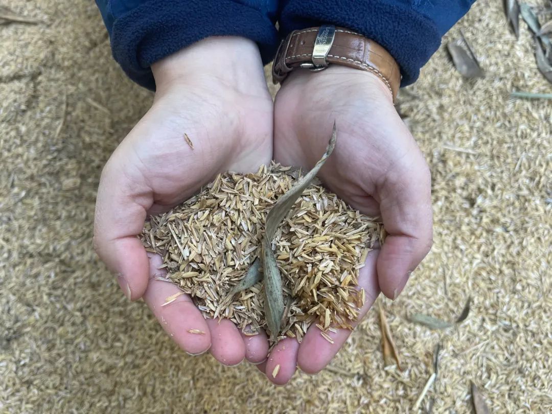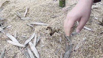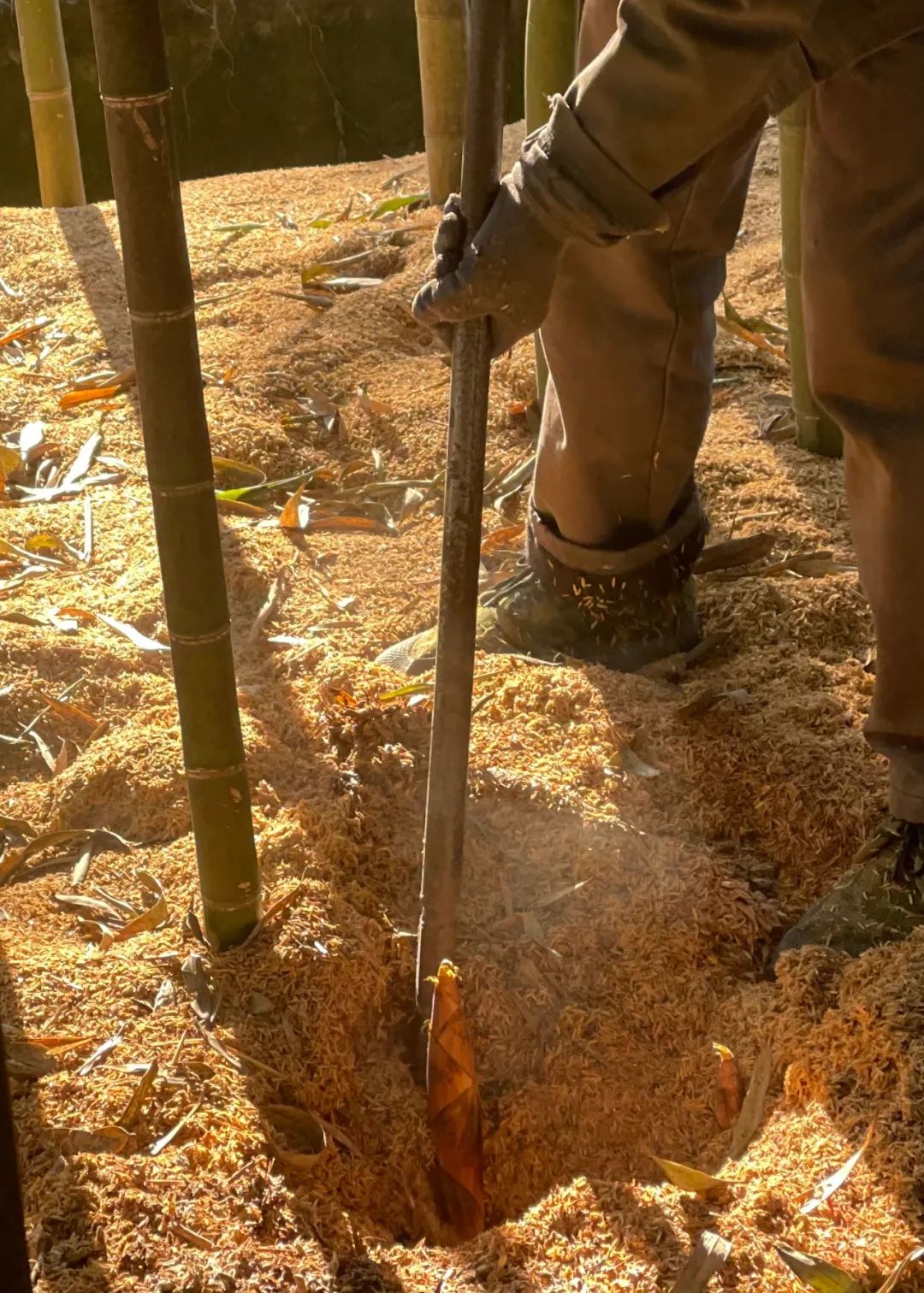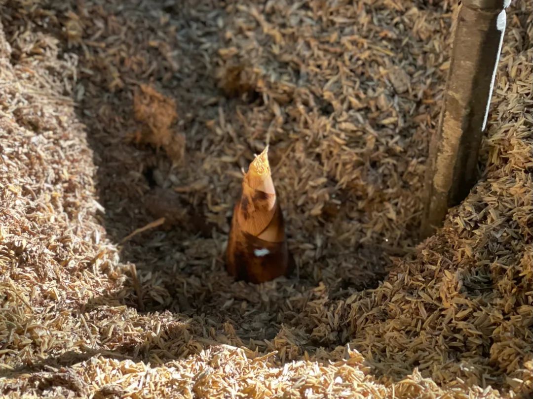 山里的春笋也要细心呵护,村民们会在竹笋表面,盖上“粮食的下脚料”稻糠,像棉絮一样的稻糠厚度约15公分。