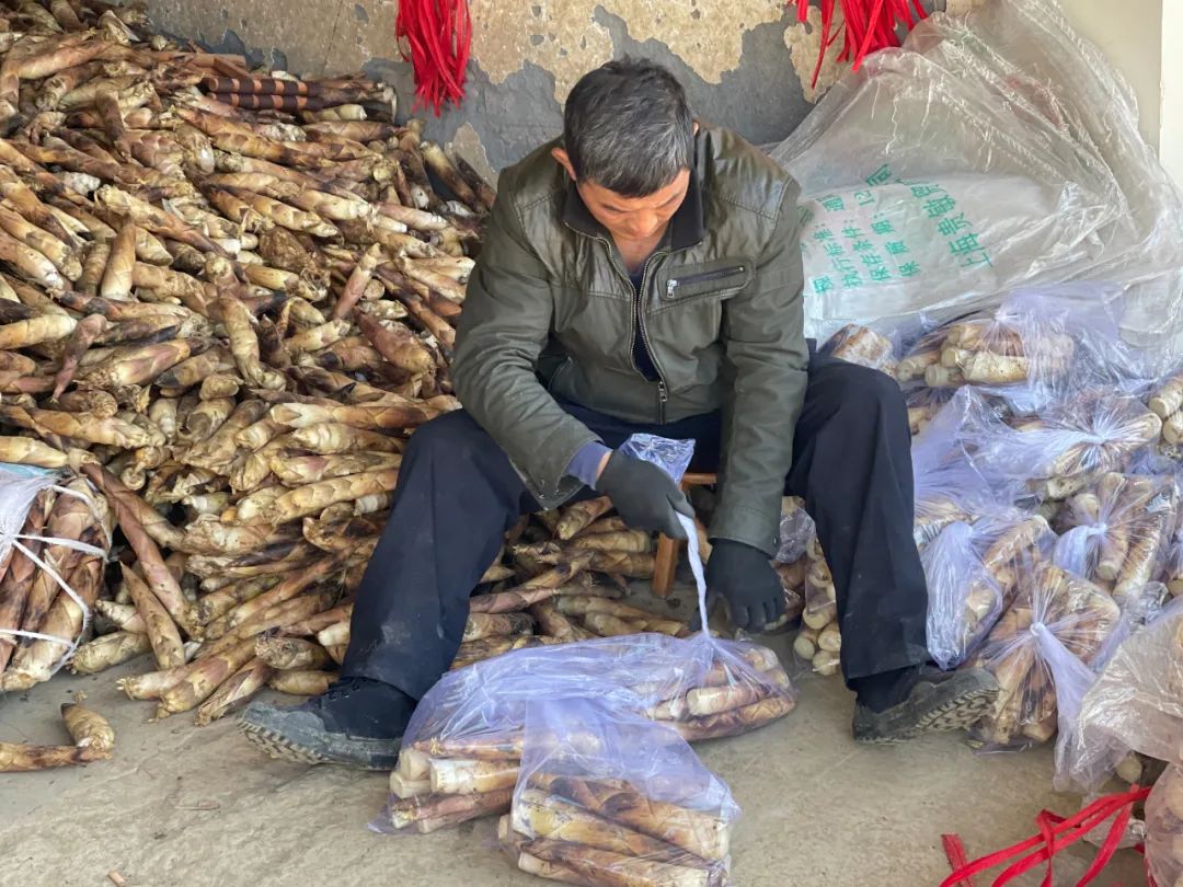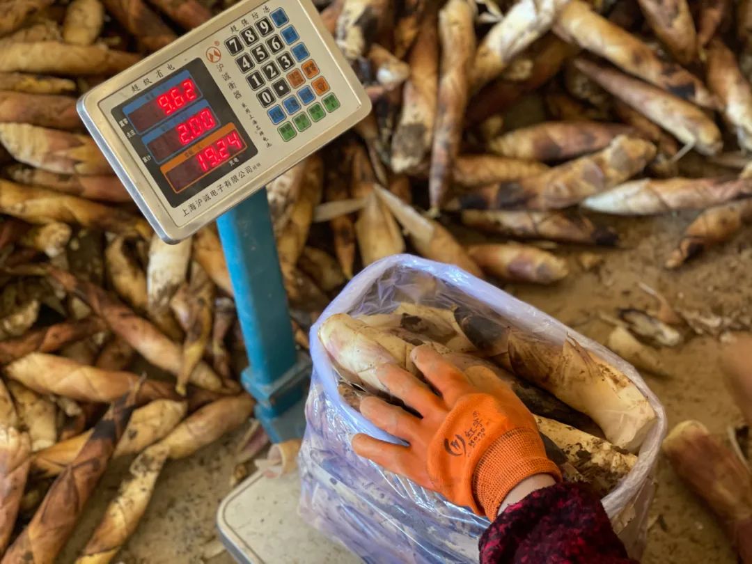挖出的笋统一运到仓库,笋农还会过一遍筛选,太粗微老的弃之,又细又长才符合我们的标准。
