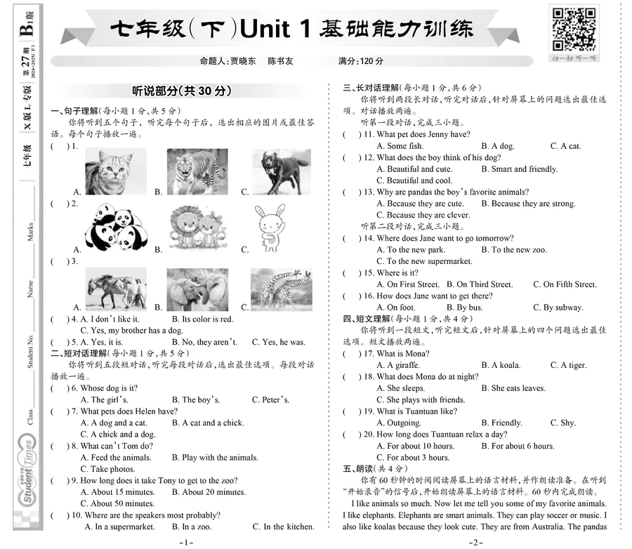 《双语学习报》七年级 X版L专版 第27期