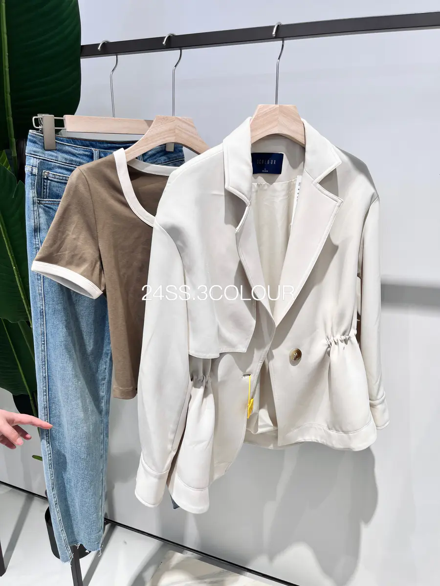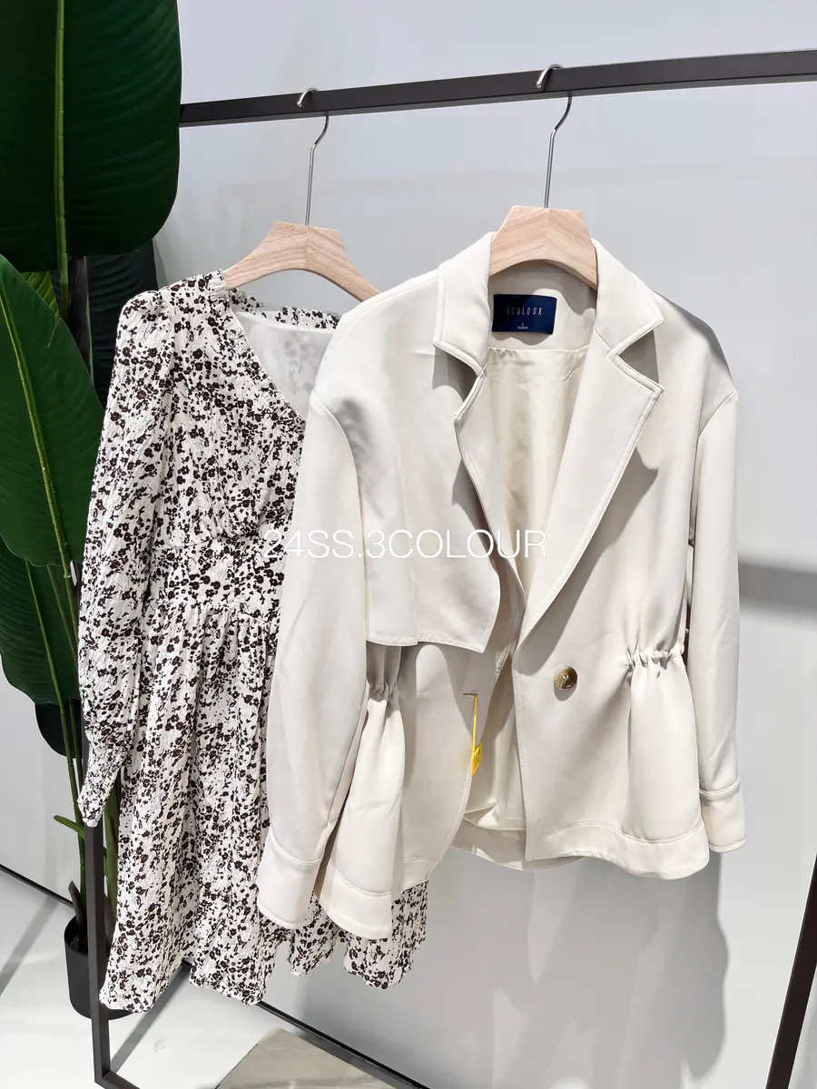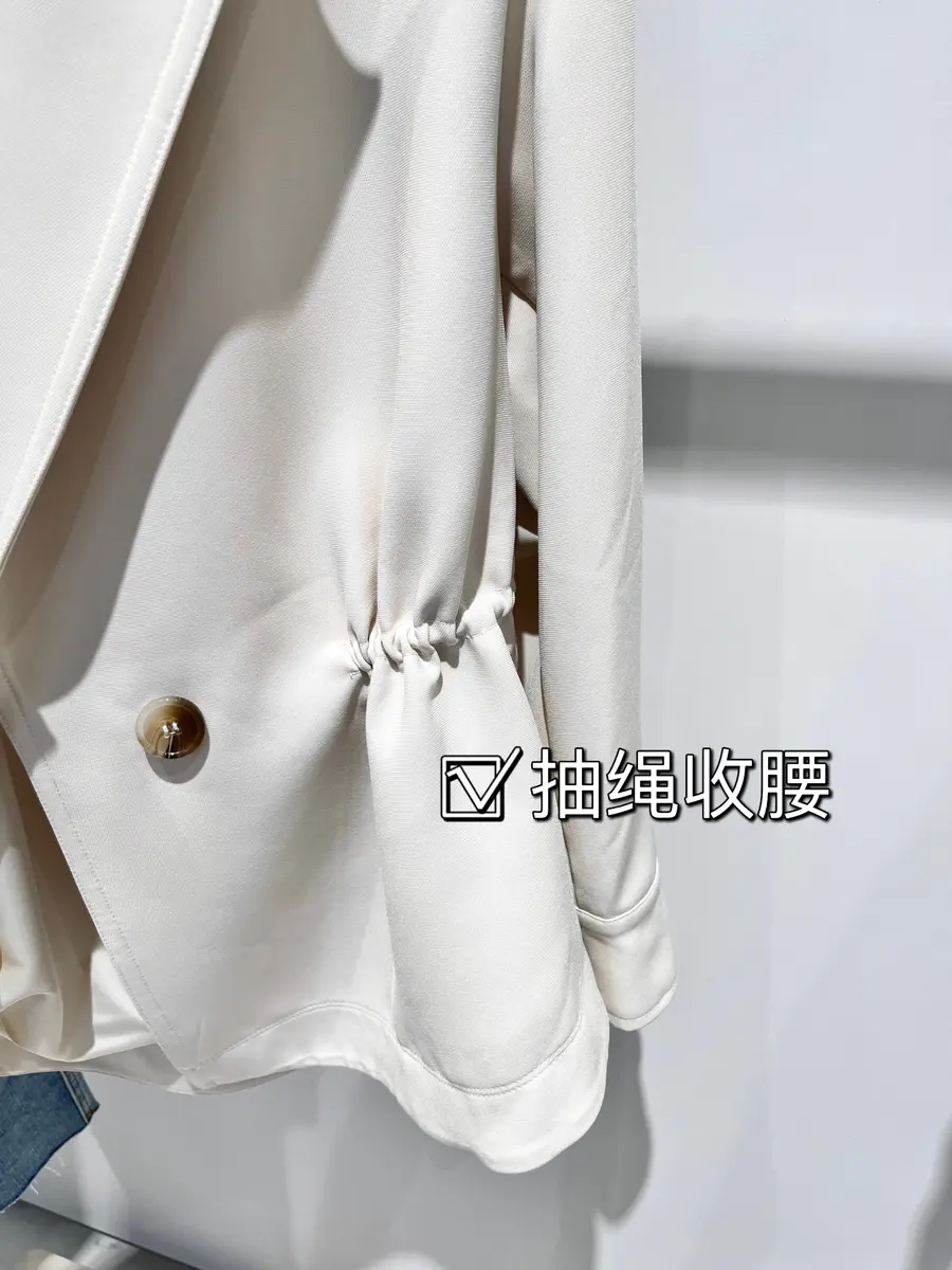 春天就是穿风衣的季节,这款短款风衣不仅不挑身高,而且结合西装领的设计,更多了一份通勤感,同时腰间通过抽绳装点,显现腰身,从而没有西装那么正式。