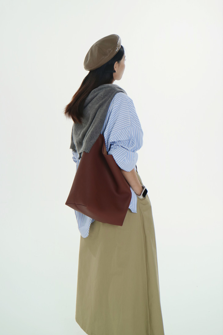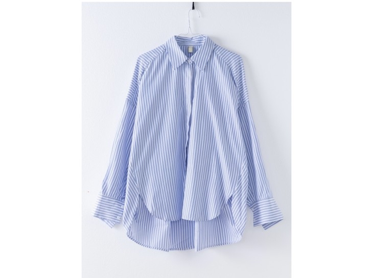 F:高品质衬衣面料经典耐看,弧形廓形走线细节考究
