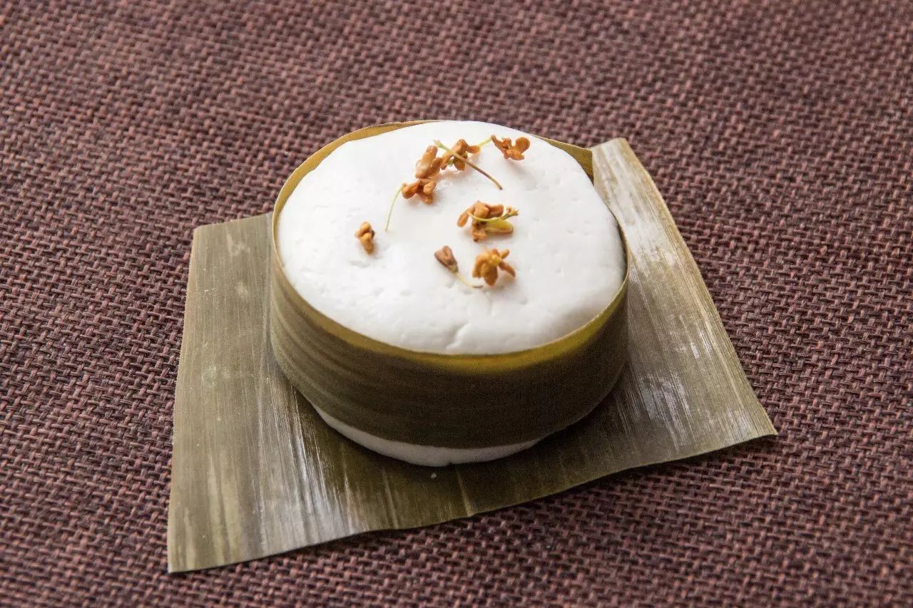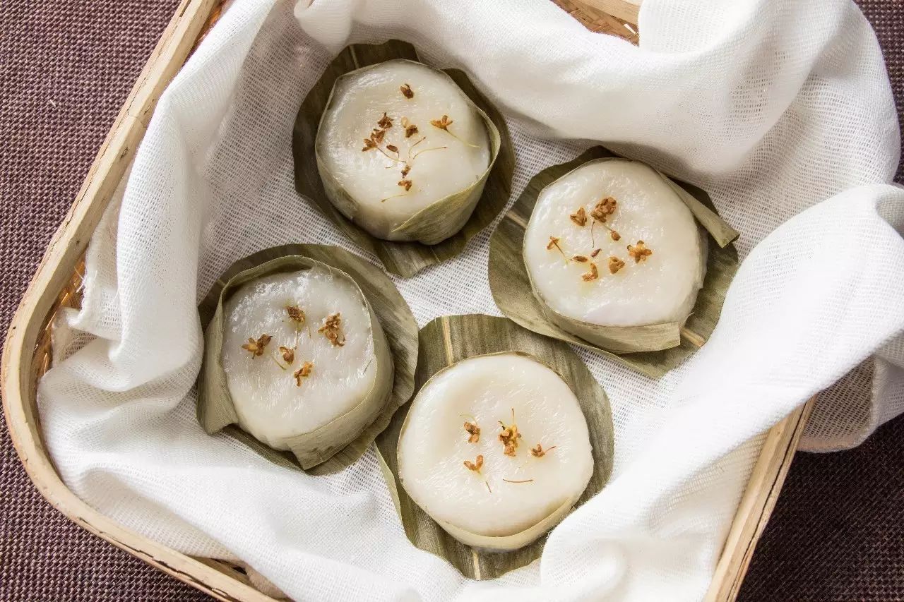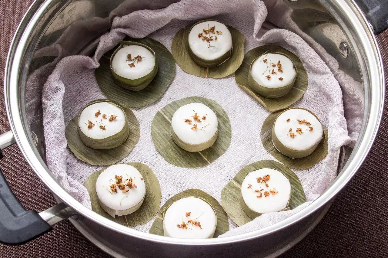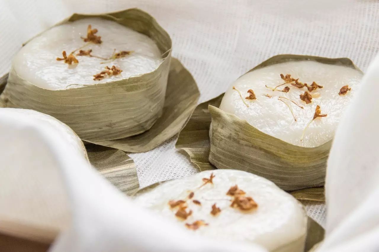 剪一条宽度和椰子糕高度差不多的粽叶,
