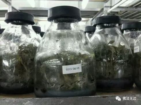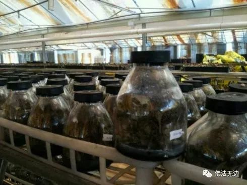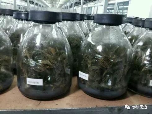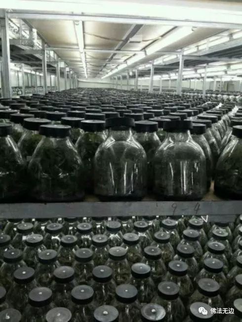 前面的育苗结束,这些金线莲会在这种大棚里长四个月,我们进去的时候,放着佛乐,瓶子上写着嗡,阿,吽,有佛教信仰的一定懂的,这几个字是非常有能量的天地之音