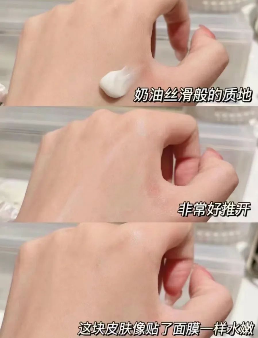 超轻盈的奶油质地,涂上手立马化开,滋润到皮肤深处的每一个细胞。