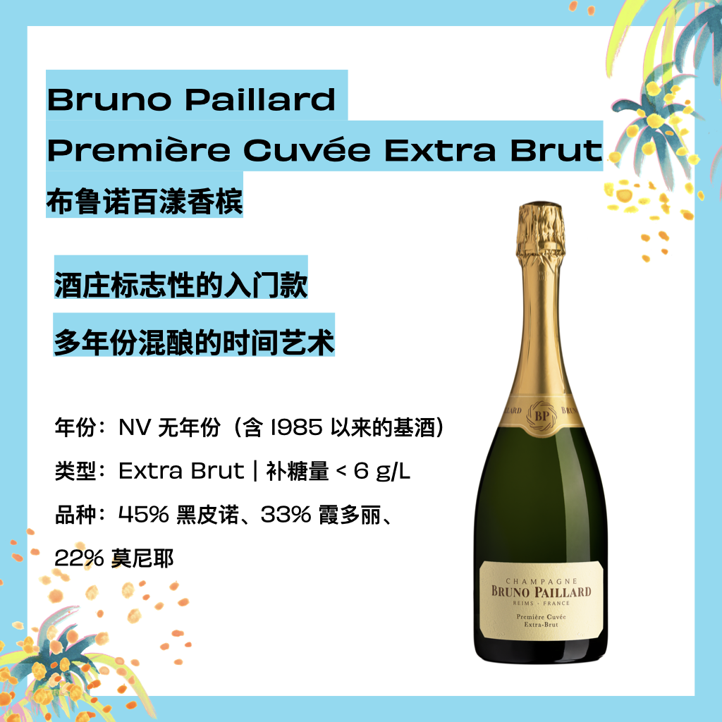 Bruno Paillard 的香槟以纯净、优雅、细腻闻名。所有酒款只使用初榨葡萄汁,全系列补糖量低于 6g/L,除渣后必须静置至少半年才会上市。酒庄自 1983 年起率先在背标上标注除渣日期,被誉为透明化的先锋。