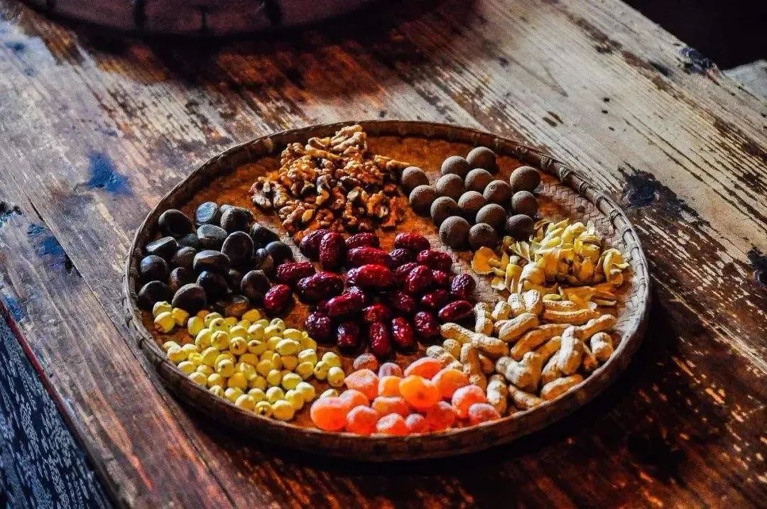 据南宋吴自牧《梦梁录》中记载:“此月八日,寺院谓之腊八。大刹等寺,俱设五味粥,名曰腊八粥。”无论南北方,家家户户都要在这一天喝上一碗腊八粥,也叫七宝粥、五味粥、佛粥、醎粥。而七宝指的是粥上面的杏仁、桃仁、果脯等点缀物,五味指是江米、黄米、豆子等五种主料。