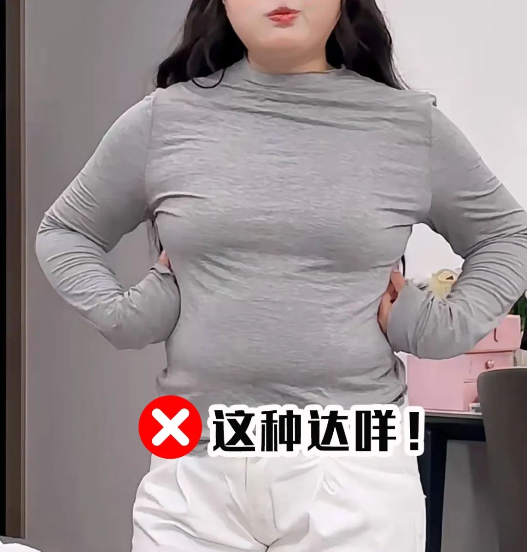 尤其是每年被吹捧上天了的各种半高领紧身款小打底,太挑身材了!肉肉女生稍不注意就买到这种“上不了台面”的款。