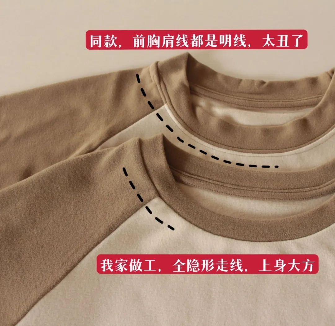 除了好看+保暖,这件打底衫本身的面料组成和所用工艺,也都是直奔大品牌的标准。
