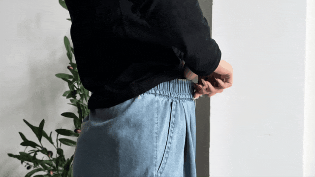 这次咱们的天丝牛仔裤直接贴心改良成了弹力裤头设计,没有拉链的束缚感,松紧刚刚好,轻松包容你的“小肚肚”。