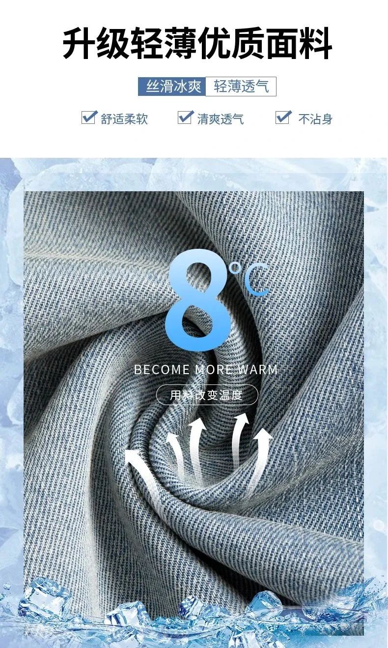 新升级面料比普通牛仔更轻薄,穿上后体感温度直降8°C,炎热天气也不怕闷热出汗,水汽迅速排出,告别黏腻感。