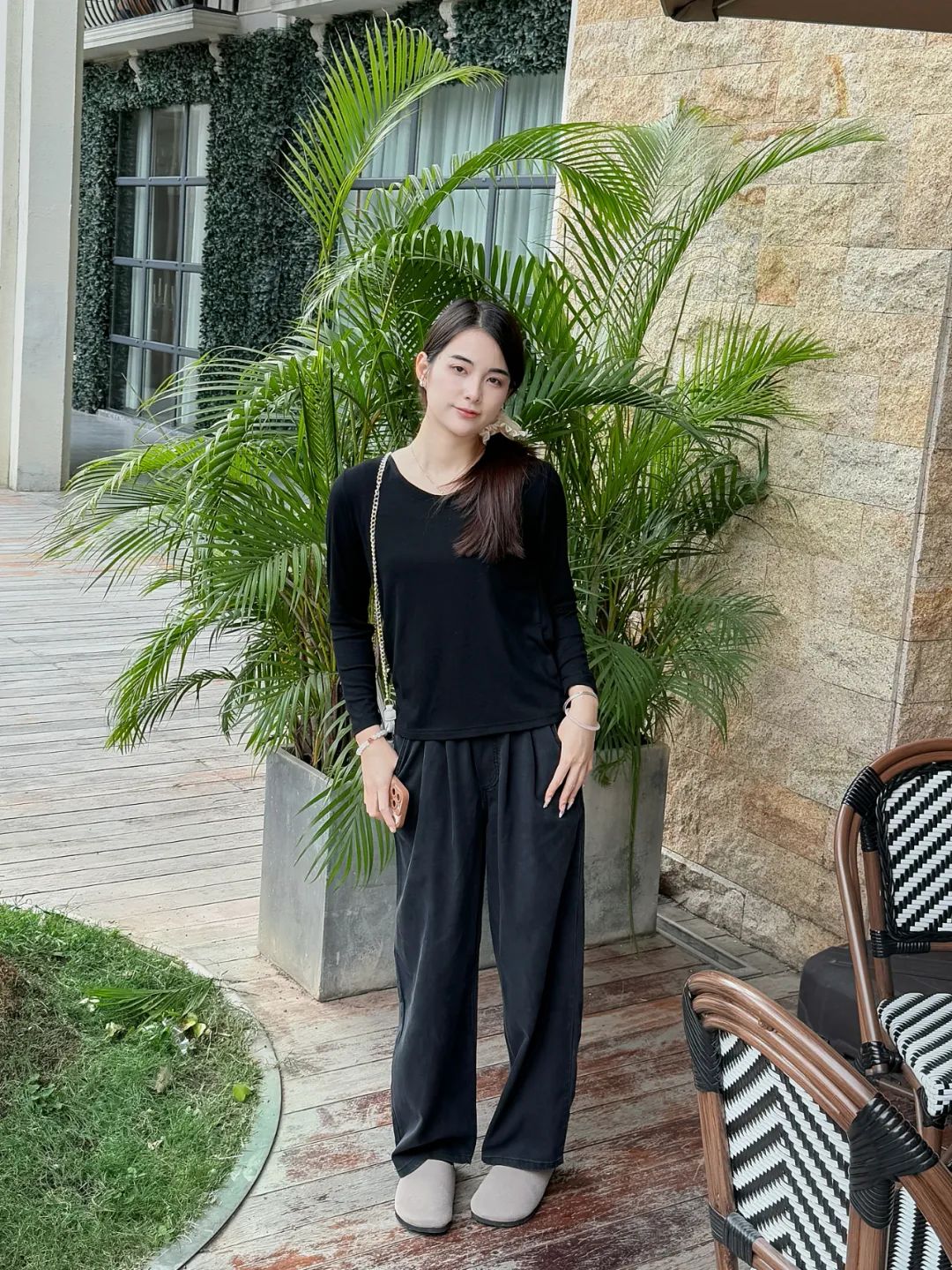 今年的新款天丝牛仔山本裤,融合了山本裤的垂顺与牛仔裤的经典阔腿裁剪,修饰腿型同时,远离传统牛仔裤的厚重与束缚。