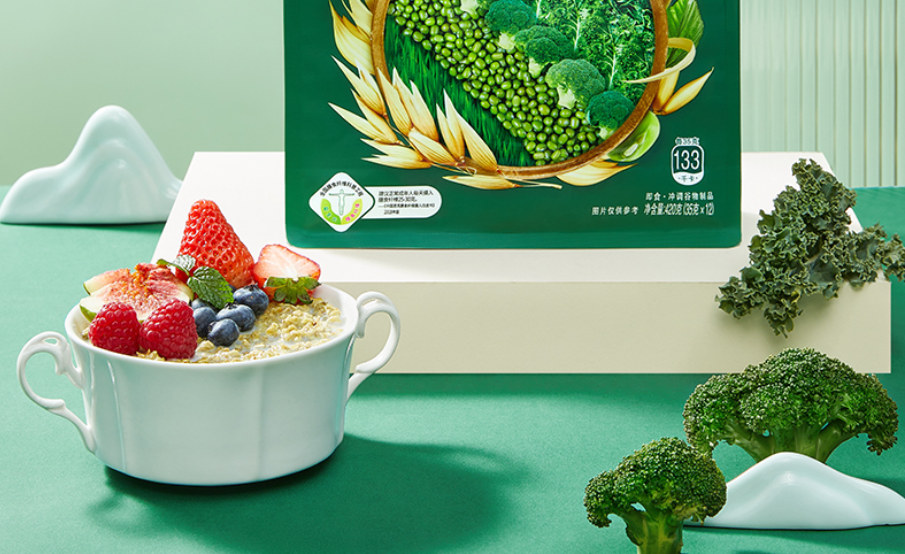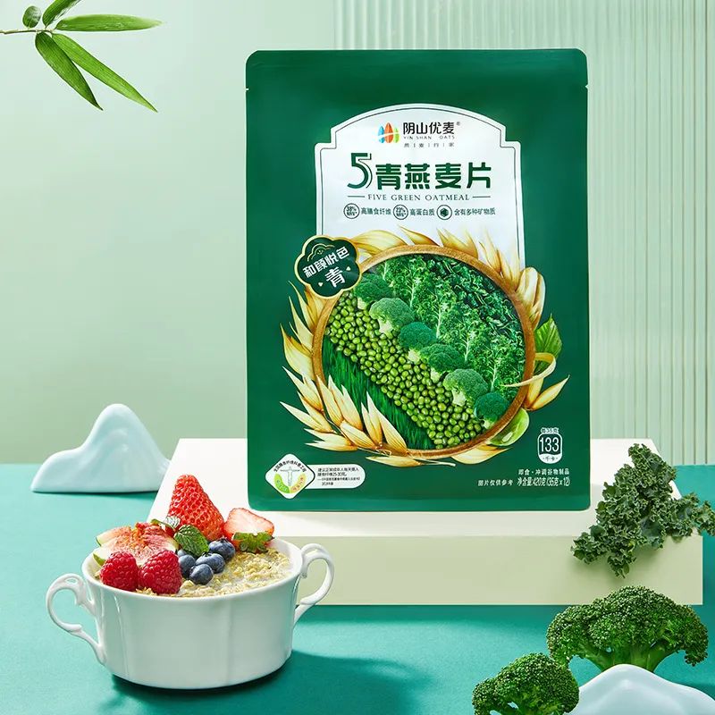 它特别添加5种精選的绿色蔬食,绿豆+桑叶+羽衣甘蓝+西蓝花+大麦苗。使【5青燕麦片】中拥有高膳食纤维和高蛋白质。
