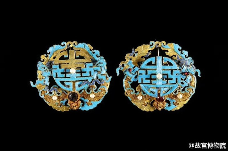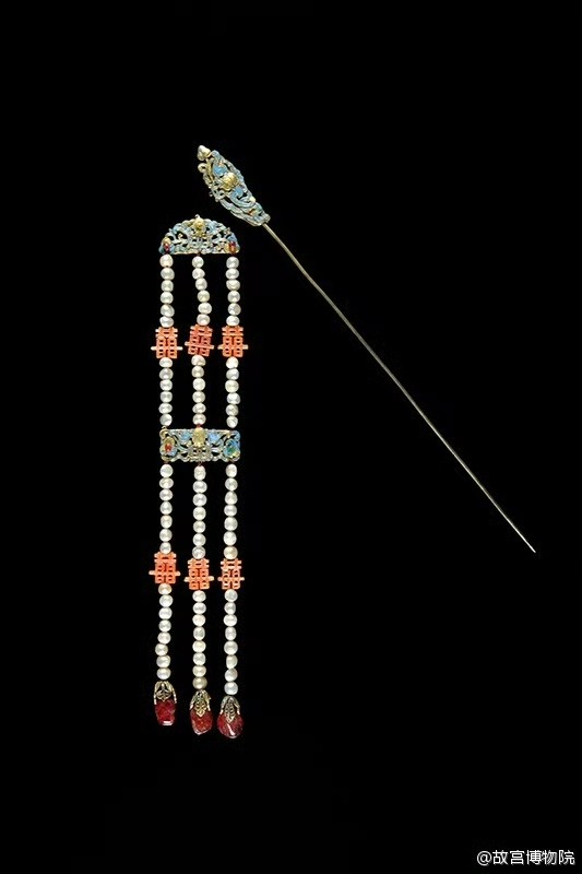 “囍” 字饱含对婚姻、多子多孙的期盼,婚嫁庆典中,成双成对的喜字纹样首饰,是新人对美好生活的期许。像同治皇帝大婚时,皇后佩戴的银镀金点翠穿珠流苏,把这份喜庆与吉祥,通过首饰传递。