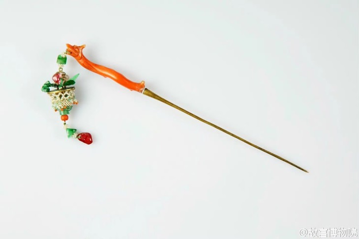 清人偏爱热烈吉庆之物,花篮作为吉庆器物,自然备受青睐,传世首饰里,花篮样式数不胜数,成为传递吉庆氛围的重要载体。清代花篮造型的首饰数量极多,宫中遇喜庆事,女眷们头戴福字簪、寿字簪,也少不了花篮簪装点。