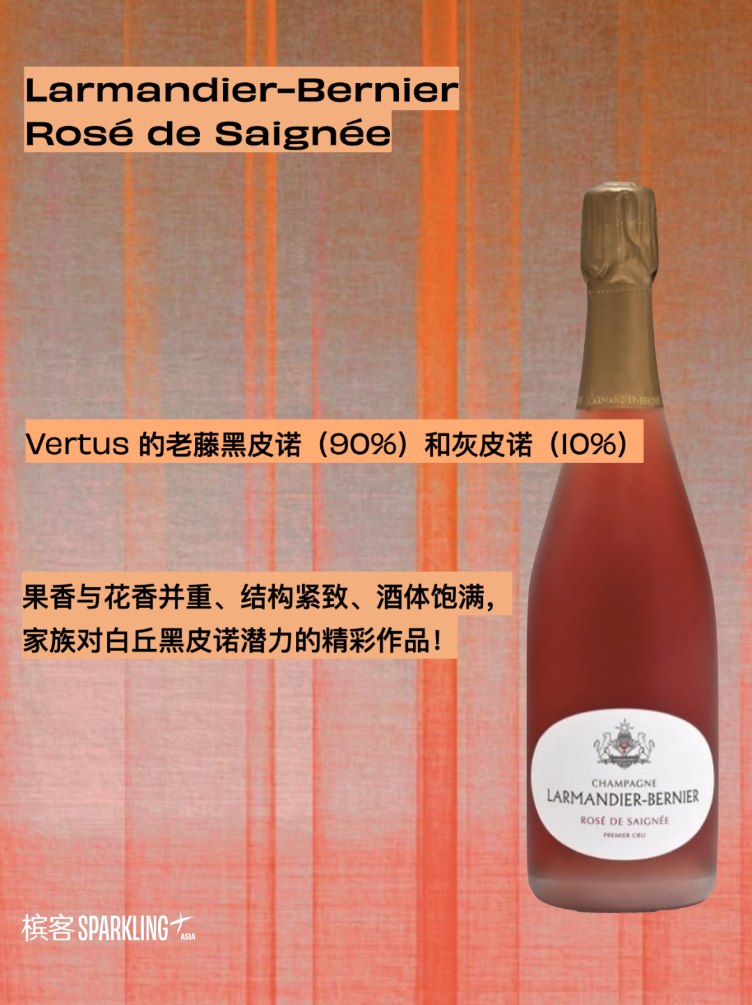 在白丘产区找一款饱满果香、花香丰富、充满张力的 Rosé de Saignée ? Larmandier-Bernier 选择用它来表达 Vertus 风土奔放的一面。