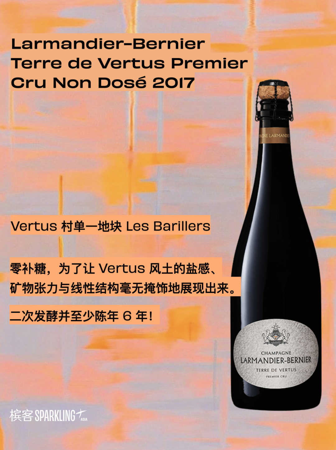 零补糖 (0g/L),这样的选择并不是为了“极端干型”,而是为了让 Vertus 风土的盐感、矿物张力与线性结构毫无掩饰地展现出来。