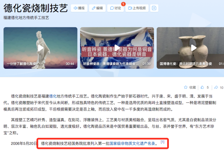 2006年5月,“世界瓷都”德化瓷烧制技艺经国务院批准列入第*一批非物质文化遗产名录。