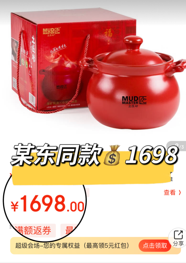 经过我们的筛选和对比,给家人们选出了这款【土匠坊 中国红·福煲】